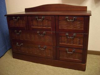 籐クラッシック調家具シリーズの天然木のワイドチェストが