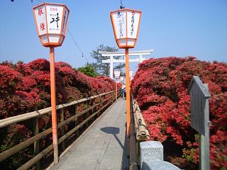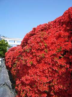 赤い塀のように咲き乱れるキリシマツツジは圧巻です。